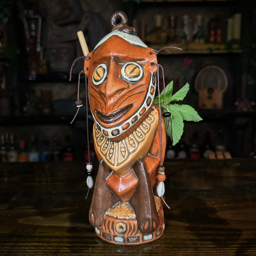 Tiki tOny's Enchanted Tiki Room Drummer ceramic Tiki Mug (Orange or Green), sculpted by Tiki tOny and Thor - Ready to Ship! (FREE SHIPPING in U.S.)