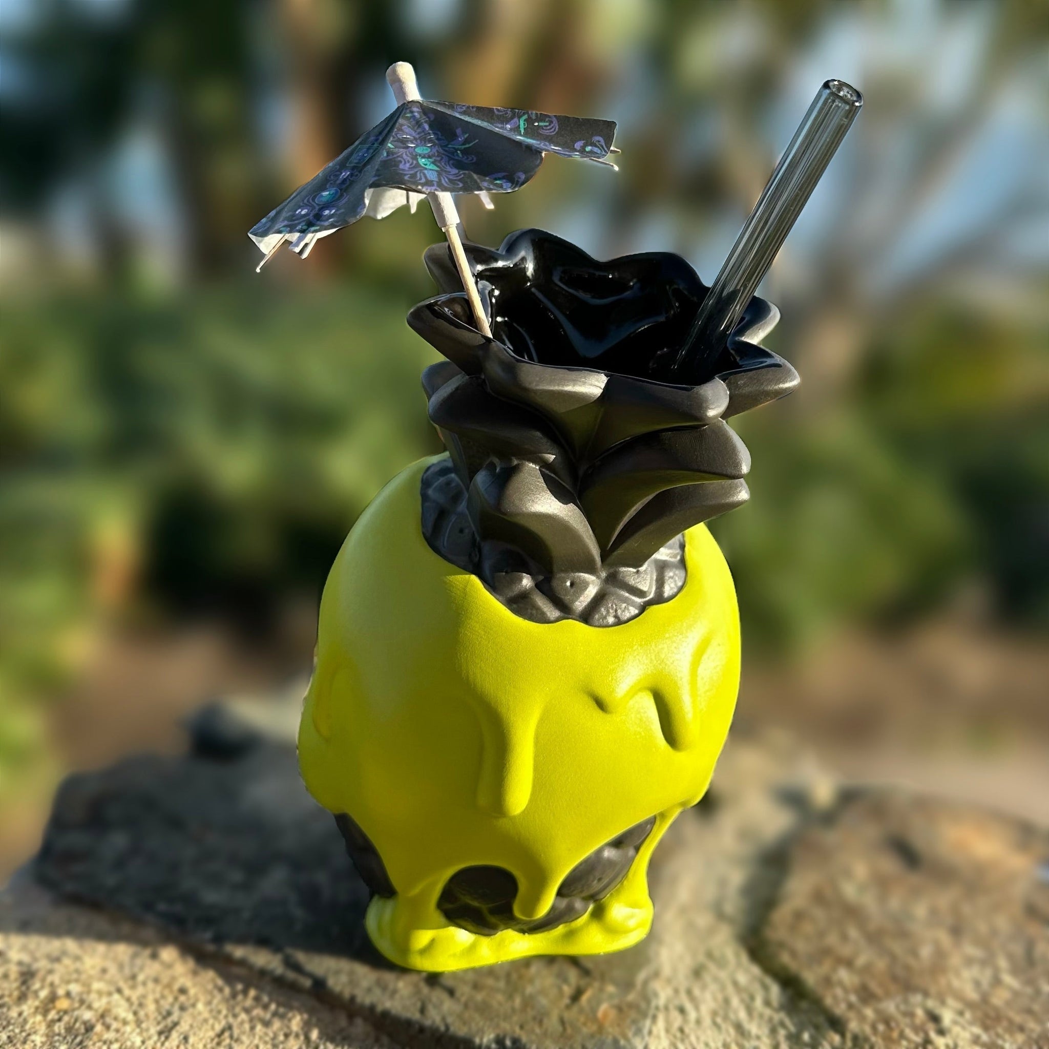The “Poison Pineapple” mug is inspired by Jeff’s first foray into Tiki related art. Jeff designed, and first introduced, his Poison Pineapple tee shirt in 2016. For a brief time, the original art also served as the logo for Jeff Granito Designs. Jeff's been wanting to make this into a mug ever since!